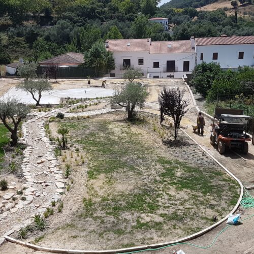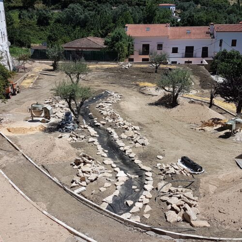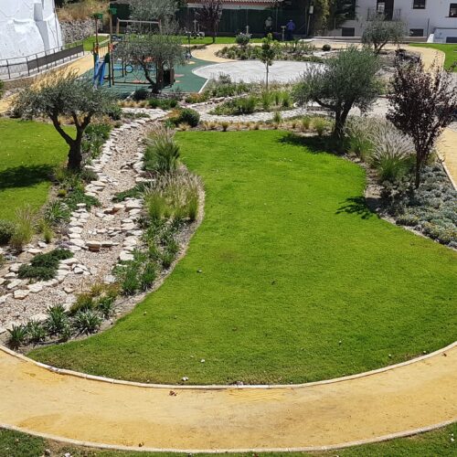Nuestro encargo consistió en transformar este espacio en un lugar vivo, atractivo y útil para la comunidad. El objetivo principal fue crear zonas verdes frescas y acogedoras, con abundante sombra gracias a la plantación de arboleda cuidadosamente seleccionada.