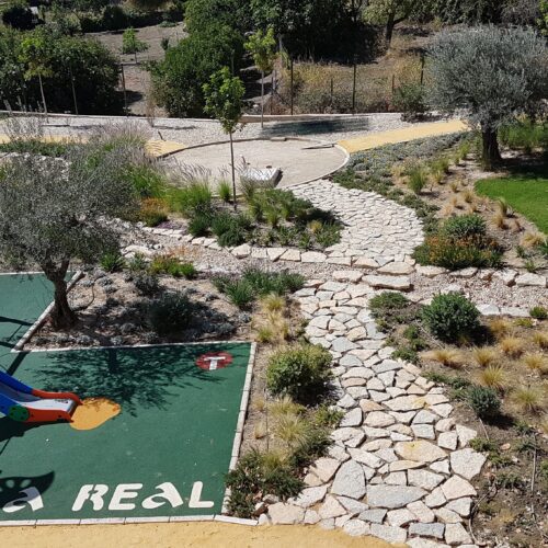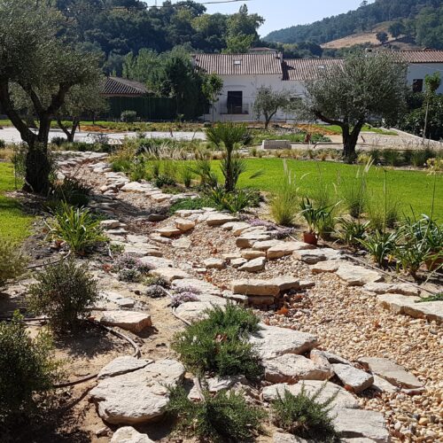 Uno de los elementos más singulares del proyecto fue la creación de un arroyo que recorre el parque desde una alberca situada en la parte más alta hasta un estanque en la parte baja, aportando frescor, dinamismo y un toque natural al conjunto.